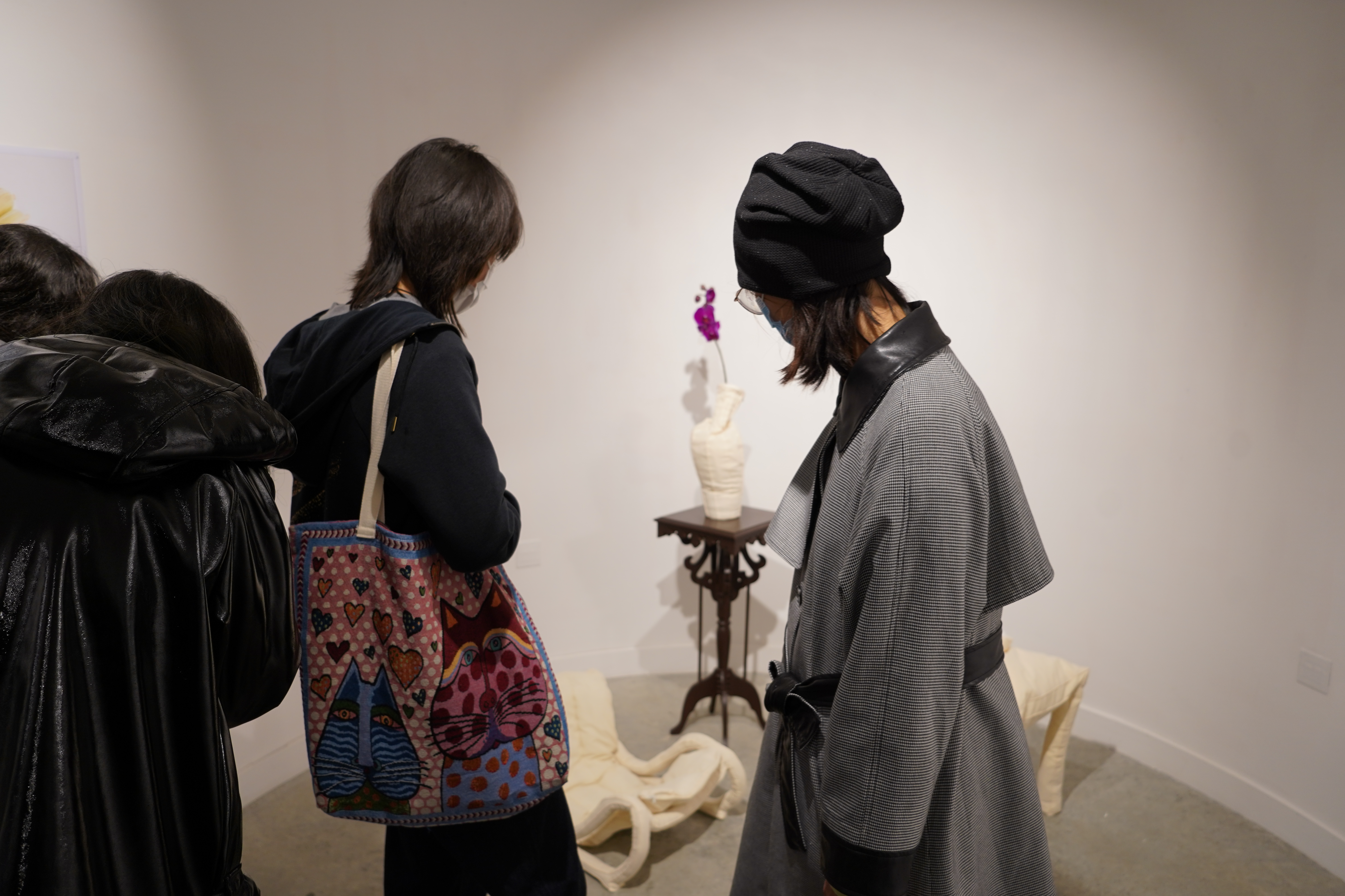 By replicating the outlines of recognizable daily objects with reversed texture and separating the tactility with a line of rice, the artist urged the audience to reflect on whether our subjectivity relies on experience. Through those soft, woozy furniture, she gently questioned the fashion of subjective idealism that was nourished by the pandemic.